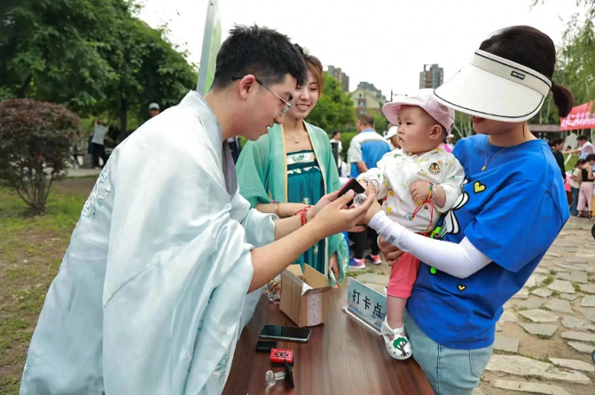 劳谦公园是二道区东城会客打卡点。在传统节日来临之际,社区邀请居民们着传统服饰,对诗词歌赋,伴柳叶拂面 ,踏古亭廊桥,遇端午国风,弘扬中华传统文化,共享一场古今穿越梦。整场活动设置了丰富多彩的文化体验环节,活动开场的“手工彩绘”艺术形式,让居民直观感受端午节的文化元素;在游园入口设置的“粽享同康”印章打卡,增加了社区居民对端午节的参与感与节日氛围;一曲欢快的舞蹈《新龙船调》拉开了活动的正式序幕;一首蕴含深刻情感和思想内涵的《酒狂》古琴演奏,把大家带入了魏晋南北朝时期;“汉服秀表演”展示了汉服之美,弘扬了民族精神和时代精神;在“离骚对接”环节中,现场的气氛热烈又紧张,让居民在享受节日乐趣的同时,加深了对传统文化知识的理解和认识。