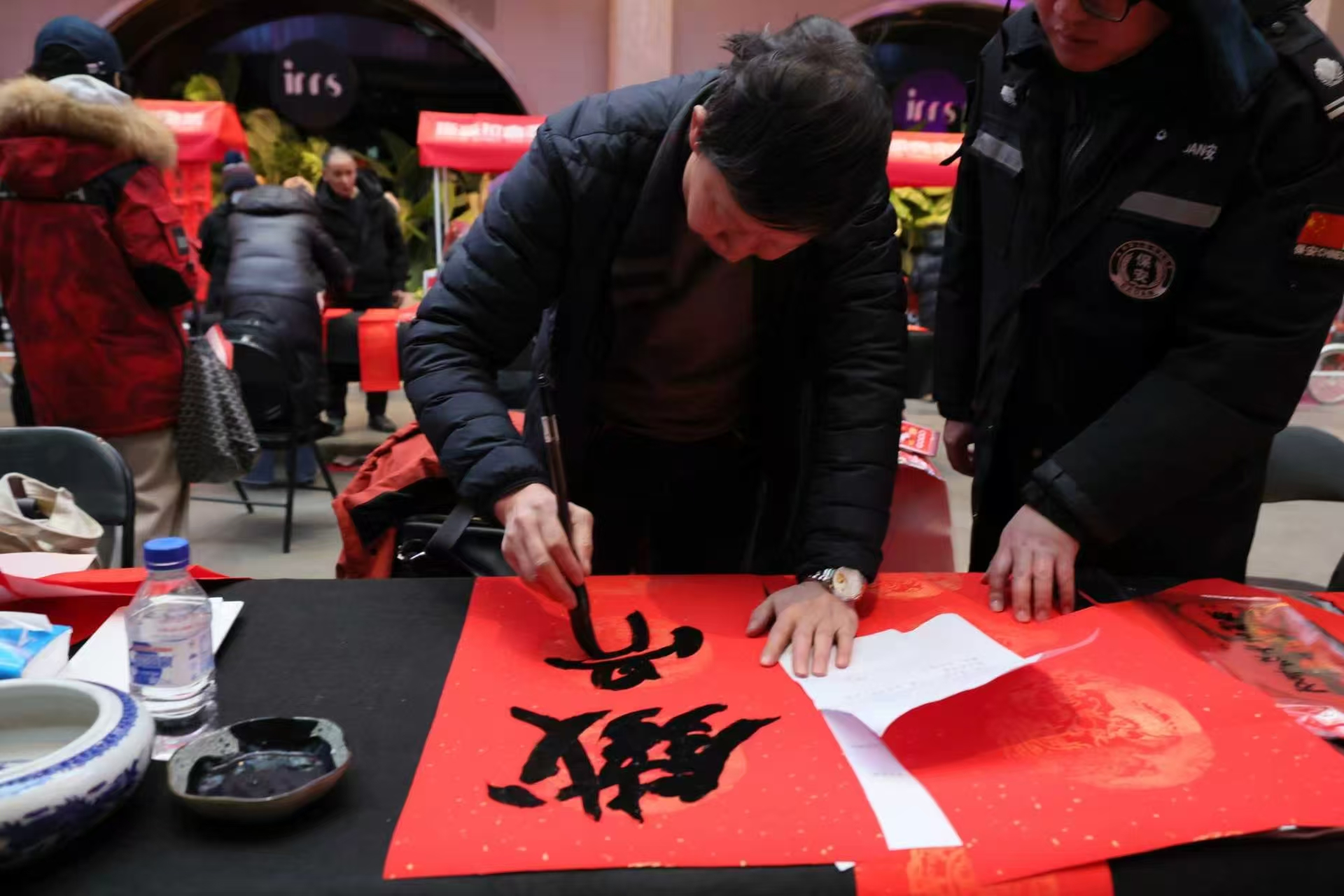 活动现场,长春市书法家协会和二道区书法家协会的10位书法老师齐聚一堂,铺展红纸,饱蘸浓墨,以中国书法特有的中式浪漫传递美好祝愿。“老师们按照我想好的词写春联,字迹遒劲有力,准备春节贴在家门上。”市民李先生高兴地说。