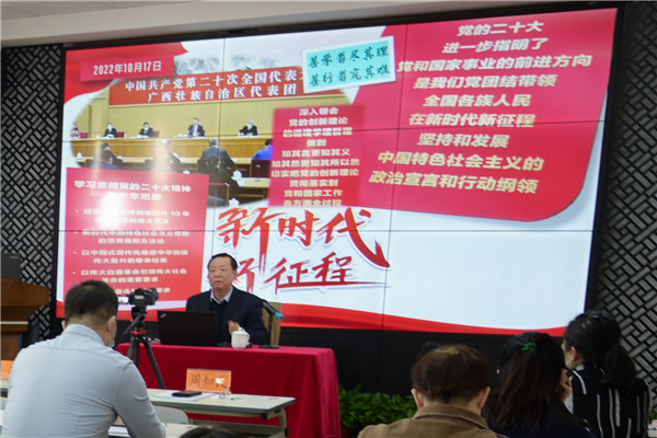 首场培训由党史学习教育省委宣讲团成员,全国党的建设研究会特邀研究员周知民开讲,参加人员涵盖整个教育系统的所有副校级以上领导及“薪火计划”青年干部总计264人。周知民以《举旗定向“赶考”路 踔厉奋发谱新篇》为题,围绕党的二十大的主题,从党的二十大的重大意义、过去五年工作和新时代十年伟大变革的重大意义,开辟马克思主义中国化时代化新境界和新时代新征程中国共产党的使命任务等四个方面,对党的二十大报告进行了深入解读。周教授深厚的党史底蕴、睿智的观点、精辟的论述、缜密的思维、幽默风趣的语言,获得学员们一致好评,也让学员们深刻领会新时代中国特色社会主义思想的内涵。