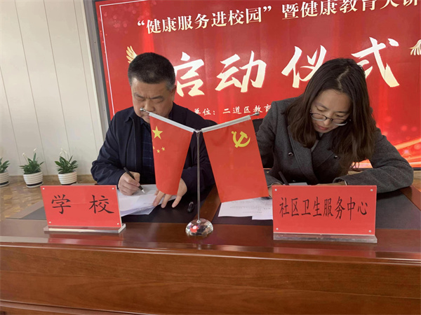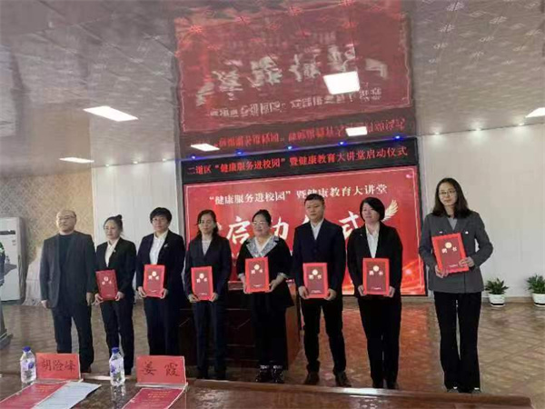 启动仪式由教育局景晓杰副局长主持。二道区教育局胡险峰局长在活动中致辞,他表示,本次活动是教育卫健部门联动、携手共进,举全区之力提升学生健康素养,为学生健康成长和终身发展奠定基础的重要创新举措,社区卫生服务中心的医生走进校园,为广大师生提供更加专业的健康服务,将大大提高学校卫生工作的专业化水平,丰富健康教育的载体、内容和形式。