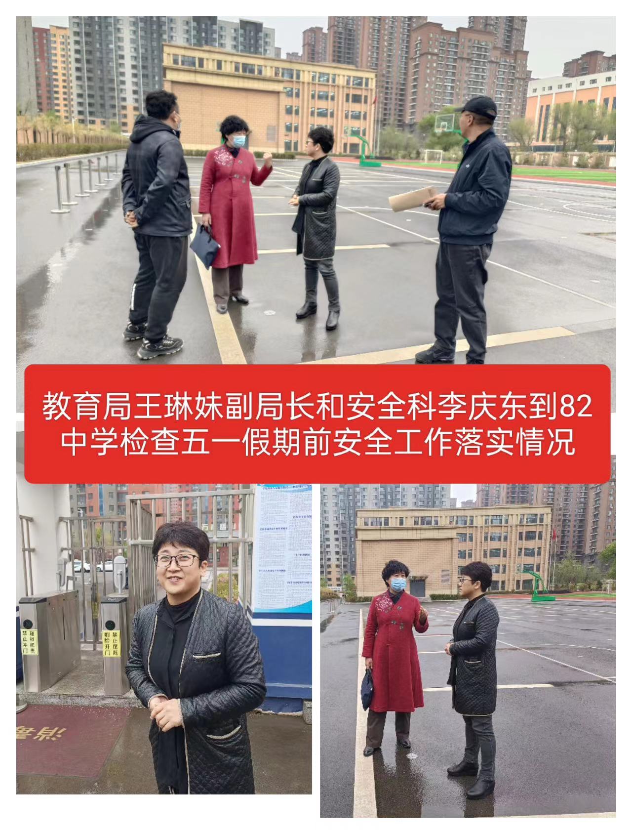 4月28日起,教育局全面落实领导安全包保责任制,成立5个检查组,对包保集团、校际联盟、大学区学校针对消防安全、危险化学品安全、电气火灾安全、校舍安全、网络安全、特种设备安全及校园周边安全开展“地毯式”“拉网式”排查,要求各学校要在学校自查和教育局督查的基础上,切实将所有排查出的各类风险隐患全面整改到位。同时,要求各学校假期期间,务必做好防风、防火工作,防范因用电量过高、电线老化和变压器负载过大而引发火灾。