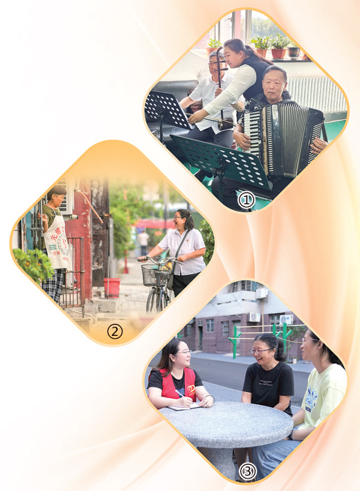 图①:吉林长春市二道区吉林街道热电社区热电一区网格长潘卉(左二)在热电社区活动室组织文化活动。 本报记者 刘以晴摄 图②:山东曲阜市鲁城街道阙里社区党委书记王长青(右)在“诚信一条街”了解商户情况。 杨国庆摄(人民视觉) 图③:江西新余市渝水区孔目江社区团支部书记欧阳枫(左一)在汽运小区和居民代表交流,收集意见建议。 凌厚祥摄(人民视觉)