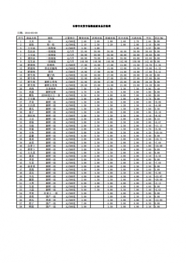 长春市农贸市场粮油副食品价格表.xls
