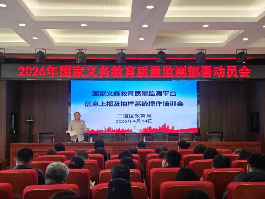 4月14日下午,二道区教育局在一楼会议室召开2026年国家义务教育质量监测部署动员会。
